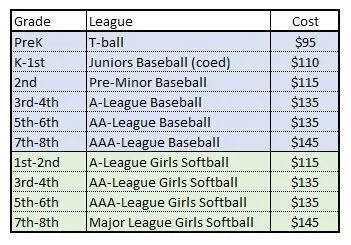 · AA-League baseball: 5th-6th grade